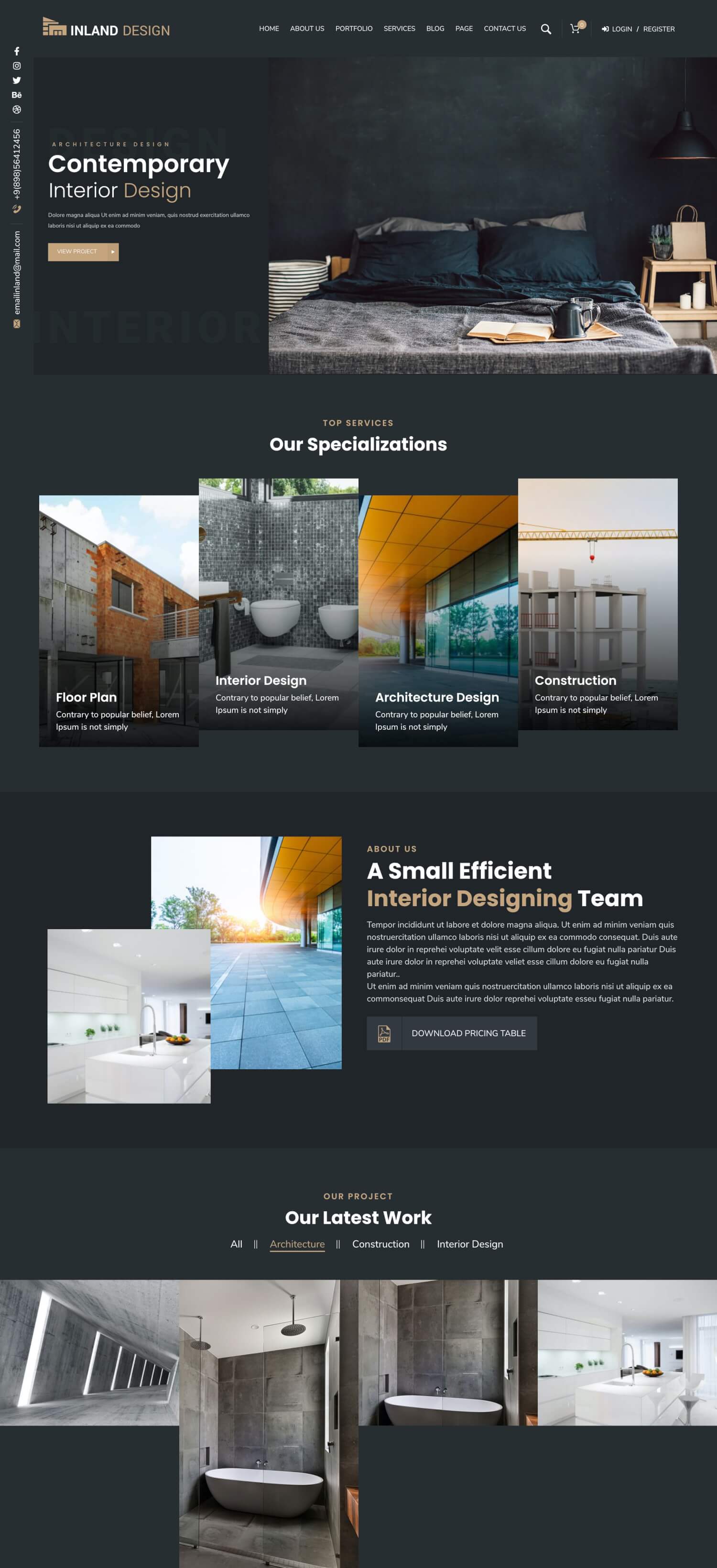 If you're looking for a powerful, adaptable, and stellar architectural WordPress theme that will really stand out, our next option, Inland Design, could fit the bill. With a clean and minimal design, the main focus is on displaying your portfolio and giving your work the attention it deserves.