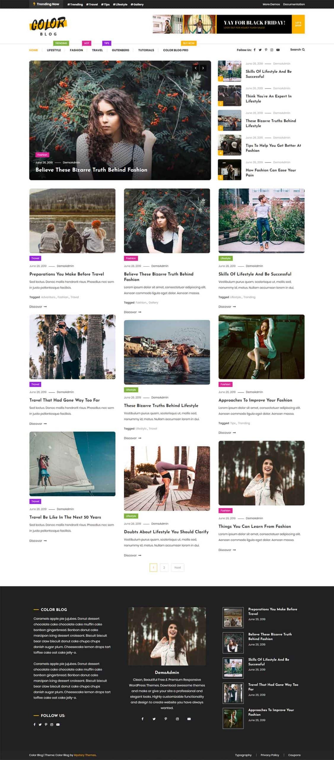 Color Blog is a free multipurpose blogging WordPress theme that should work well for publishing content on any topic. Due to this, whatever you’re blogging about from personal topics to travel stories and business news to gaming reviews, this free RTL WordPress theme is worth a closer look.