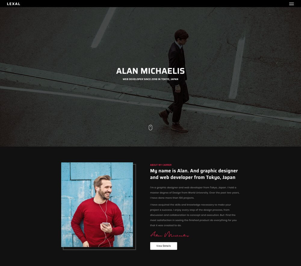 Lexal is another portfolio website theme made for creative professionals. The theme is available in multiple layouts featuring static image, slider, and video background designs. As well as multiple homepage layouts with different effects.