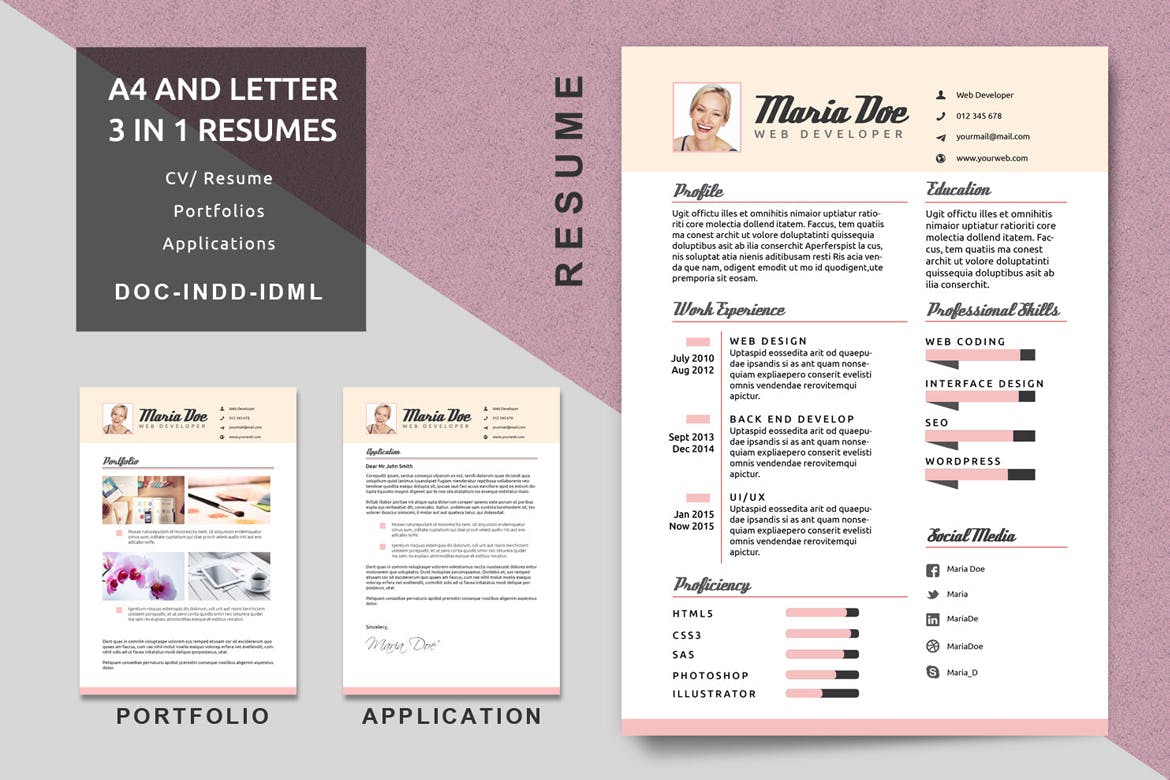 Next in our lineup of the best premium and free resume templates for Word and Photoshop, we have a bold fashion-themed template that comes with a matching cover letter and portfolio. While it’s ready to go for a designer role, you can also customize it for use with other jobs.