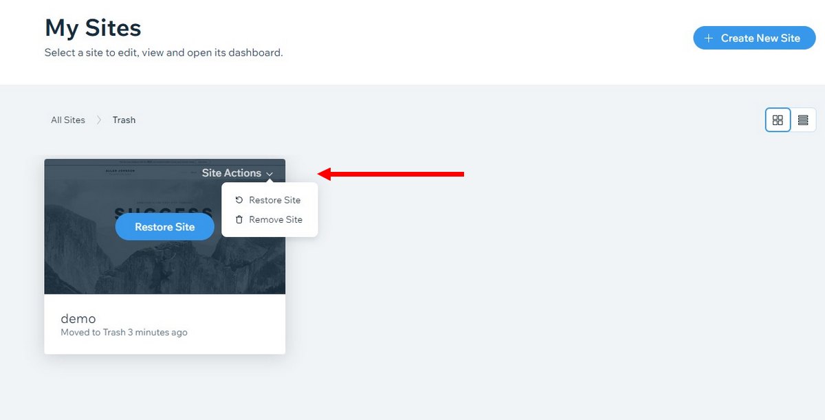 Moving the sites to the trash folder would suffice. You can follow the steps we’ve detailed in the “How to Delete a Wix Website” section above.