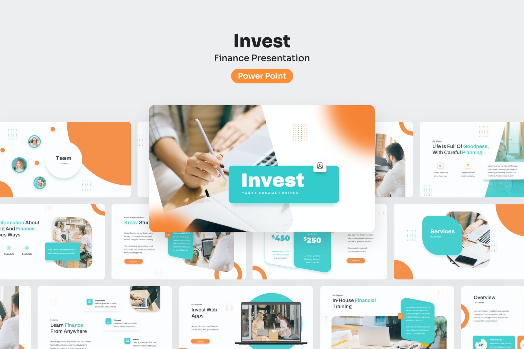 As the name suggests, Invest is a pitch deck template purpose-built to cater to the finance sector. That being said, this modern PowerPoint theme is quite flexible, allowing you to use it for a variety of other purposes. Invest offers a wide range of features, making your life easy when looking for a way to create a quick presentation.