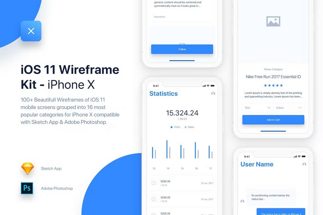 A complete wireframe kit for iOS. This Sketch template kit includes more than 100 mobile screens in 16 different categories. You can use these to design all kinds of user interfaces and layouts for mobile apps.