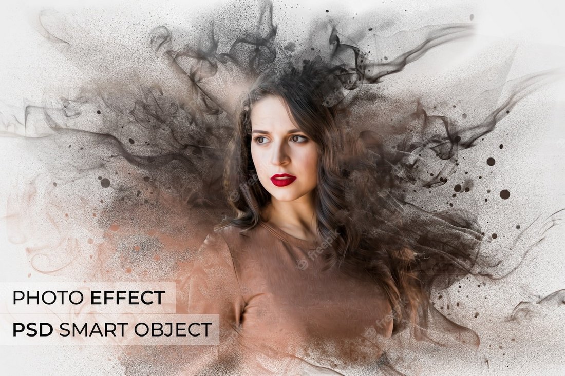 A creative smoke photo effect featuring a cool and stylish design. This one is perfect for designing photo manipulations for various graphic designs such as posters, CD covers, posters, and more. The effect comes as a fully editable PSD template.